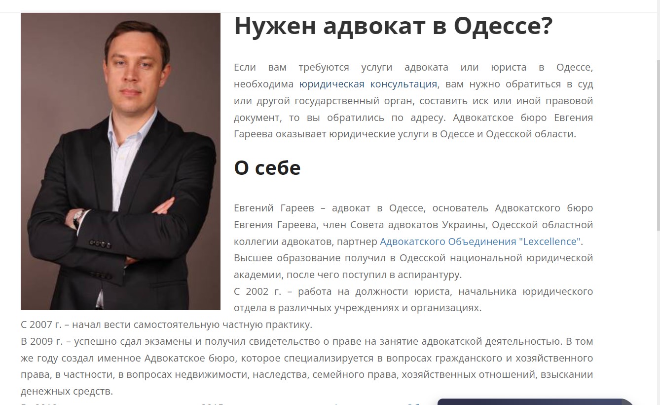 Евгений Гареев с отличием окончил Одесскую национальную юридическую академию и с 2002 года начал вести активную практическую деятельность, заняв пост помощника юриста. Сейчас Евгений Гареев - это успешный адвокат с безупречной репутацией, который является членом Совета адвокатов Украины. Евгений Геев является автором более 60 учебных пособий.