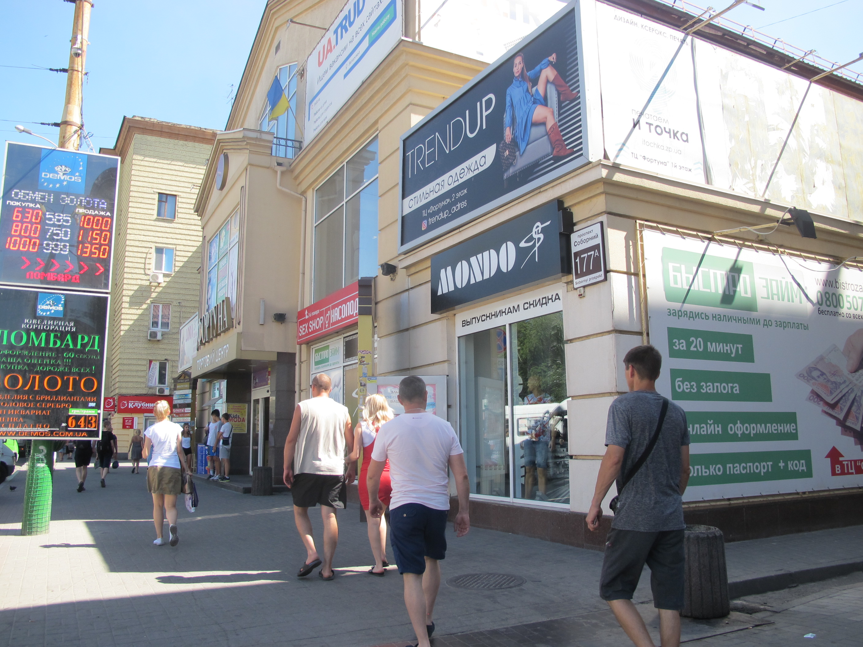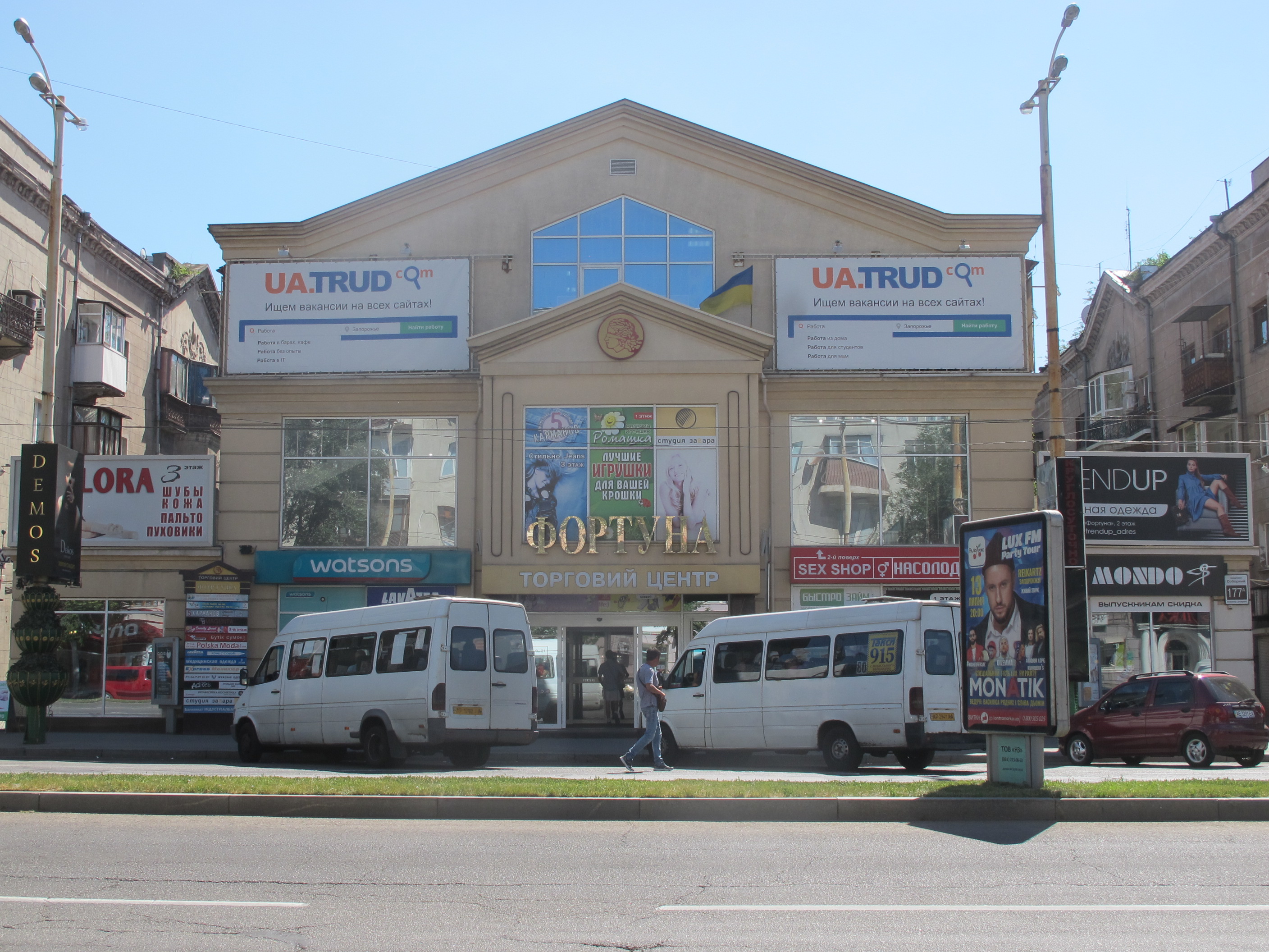 Торговый центр "Фортуна" находится в самом центре города, по адресу: проспект Соборный, 177. Благодаря широкому спектру товаров и услуг, в помещении торгового центра "Фортуна" каждый его посетитель с легкостью найдет интересное для себя занятие и подходящие места для шопинга. Женщины, мужчины, дети и компании друзей смогут замечательно провести свой досуг и приобрести качественные товары по приемлемым ценам.
