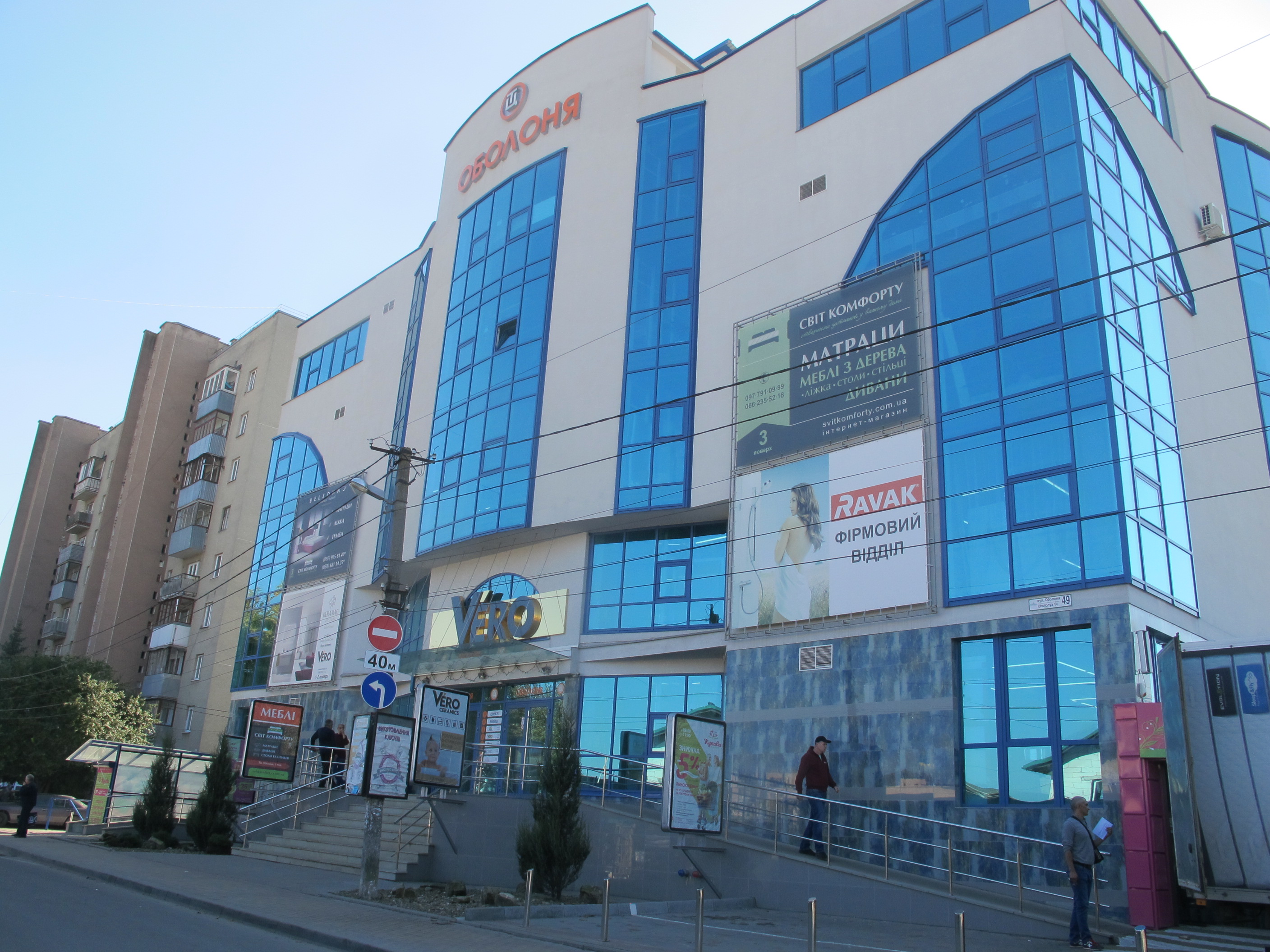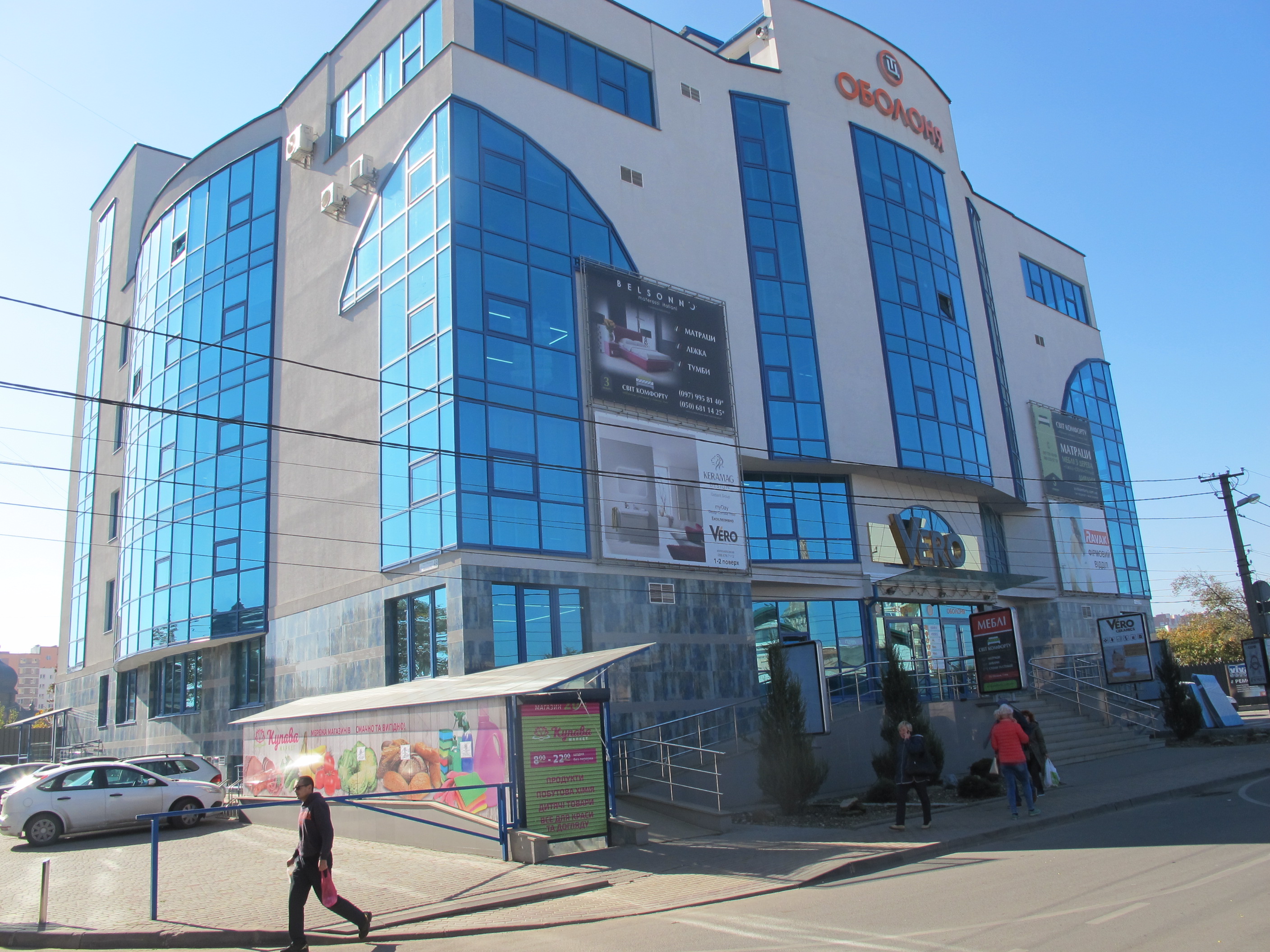 Торговый центр "Оболония" был построен в 2014 году и находится на одноименной улице. Внешний вид торгового центра привлекает своей современной архитектурой. Рядом с ТЦ "Оболония" расположен охраняемый паркинг. На все любой этаж можно попасть с помощью эскалаторов в две стороны движения. В здание ТЦ уже открылись некоторые магазины: супермаркет, ювелирный, магазины техники, бутики одежды, развлекательный центр. В подвальном этаже находится небольшая кофейня. Относится к классу комфортности "А".
