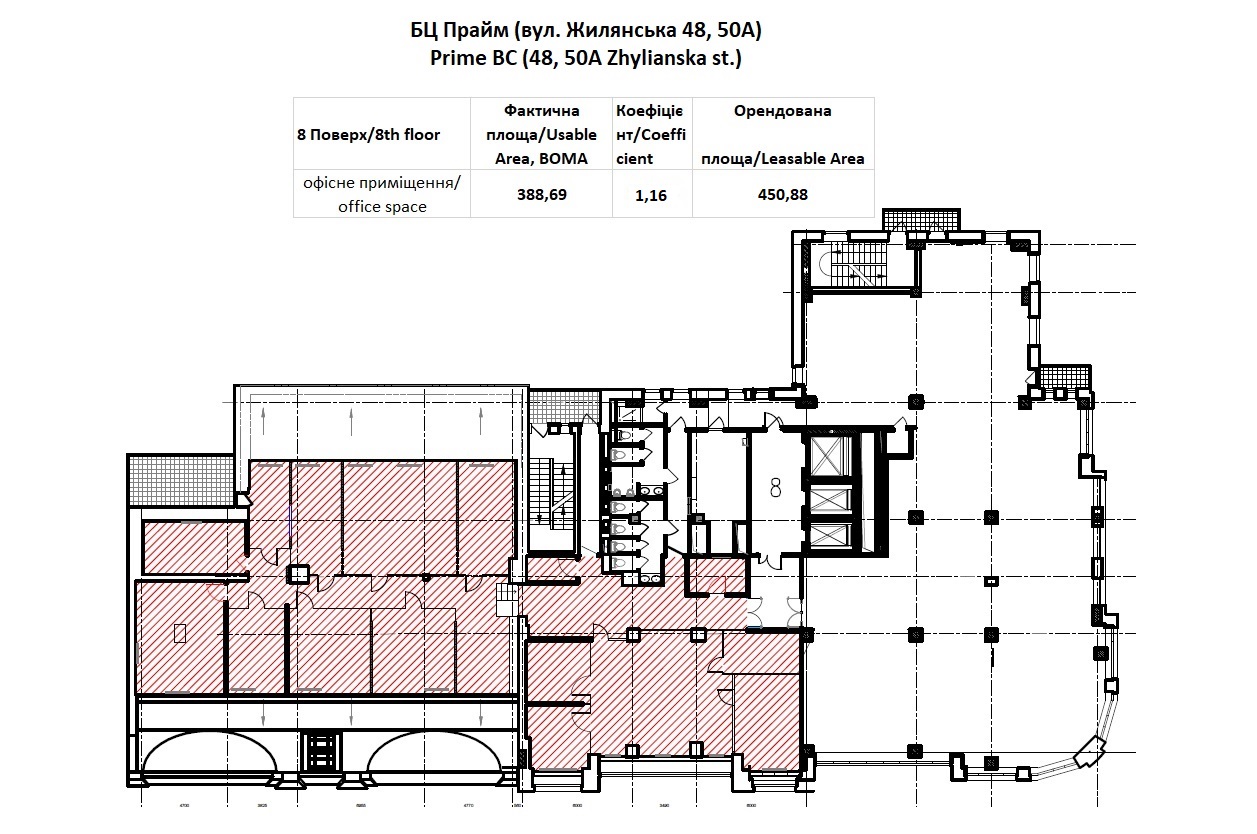 Оренда офісу 451 м2 в бізнес центрі Прайм,вул.Жилянська 48-50