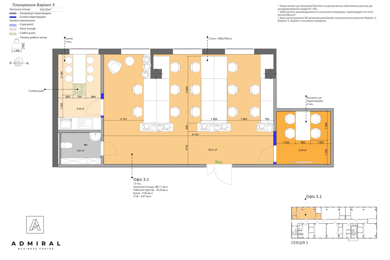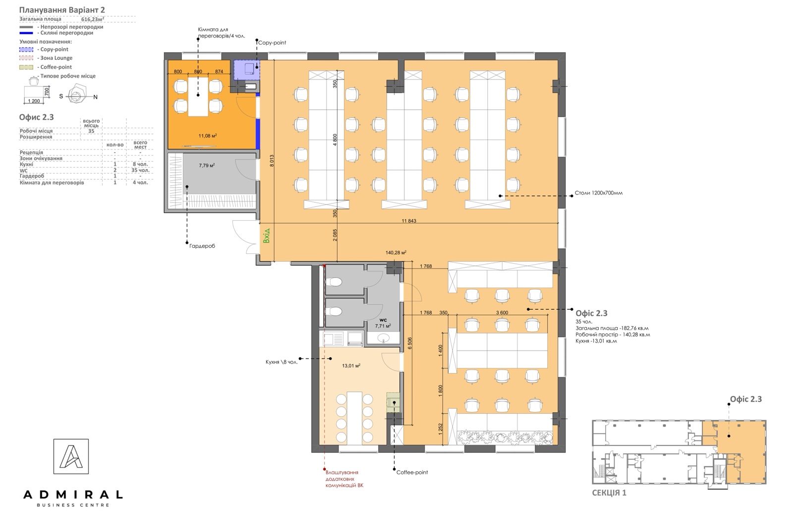 Продаж офису в БЦ «Admiral», м. Харківська 182 м2