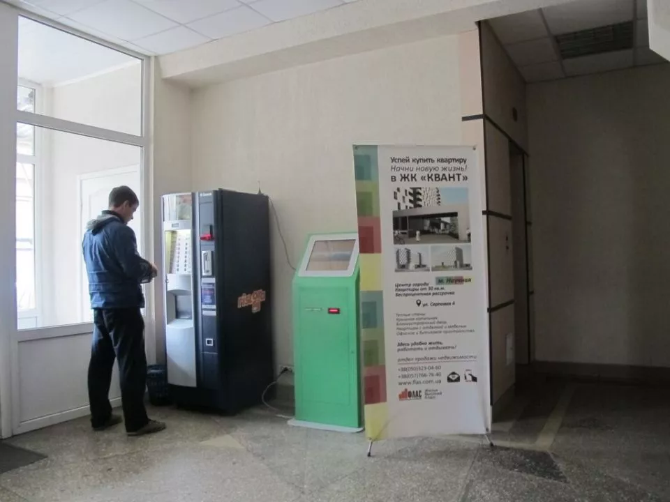Внутри здания есть кофе автоматы и платежный терминал.