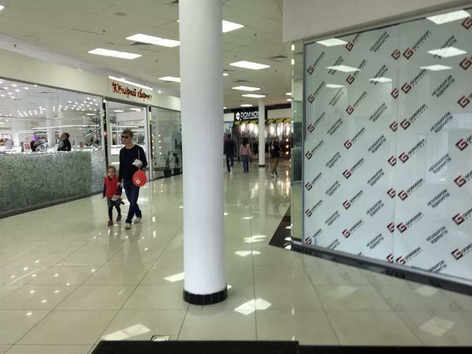 В здании торгового центра расположились: отделение банка, аптека, магазин электроники, кофейня, зоомагазин.