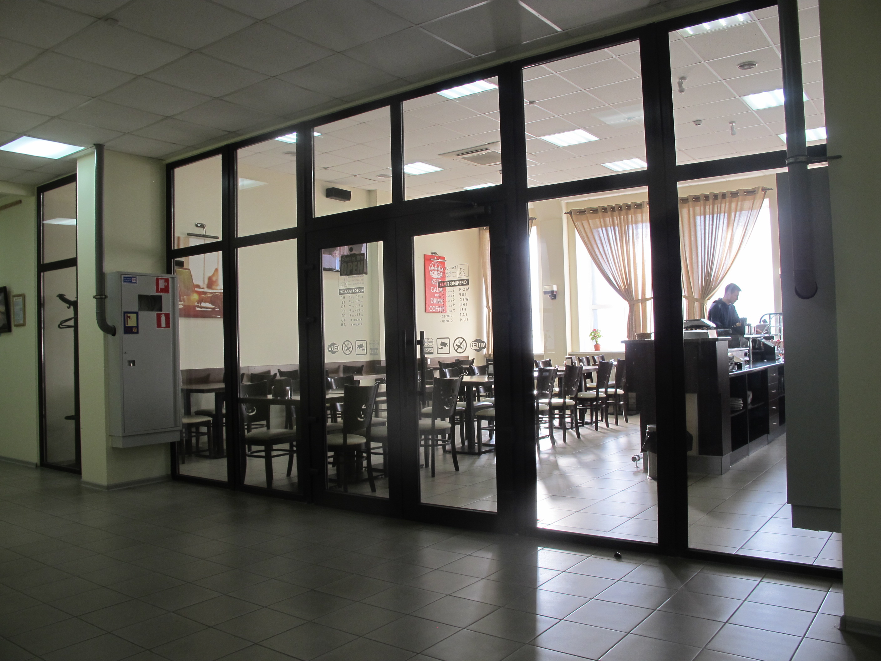 Вкусно пообедать Вы сможете в кафе напротив.