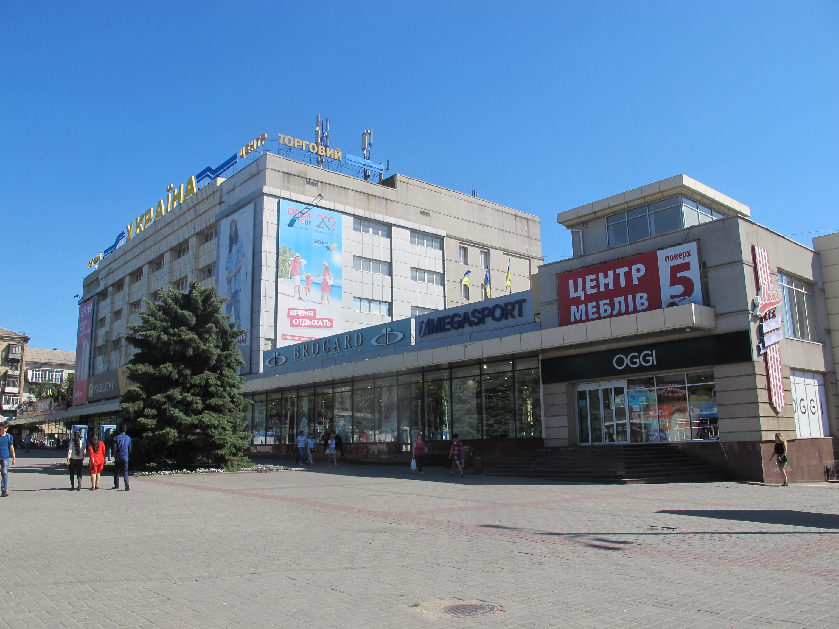 Торгово-развлекательный комплекс «Украина» - это современное здание с шикарным фасадом, которое находится в самом центре Запорожья. Внутри система вентиляции и кондиционирования, просторные проходы. Удобная парковка и качественный подбор магазинов – всё это создаёт комфортные условия для шоппинга. На территории ТЦ есть продуктовый супермаркет, магазины одежды и аксессуаров, лотки с сувенирами.